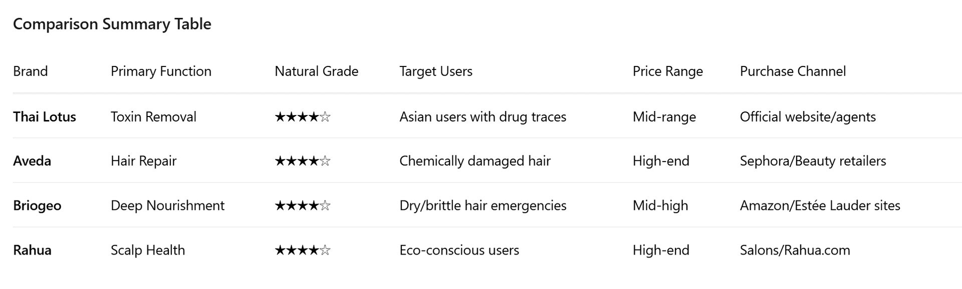 Comparison Summary Table